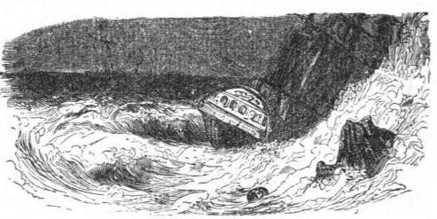 During his first voyage, a storm hit, and Gulliver was separated from the rest of his crew. Here we see the ship sinking. Gulliver was able to escape and swim to shore, where he landed on the shores of Lilliput. The same image appears in both the 1839 and 1843 Krabbe editions.