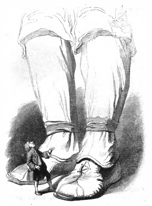 [Gulliver standing next to a giant’s feet]