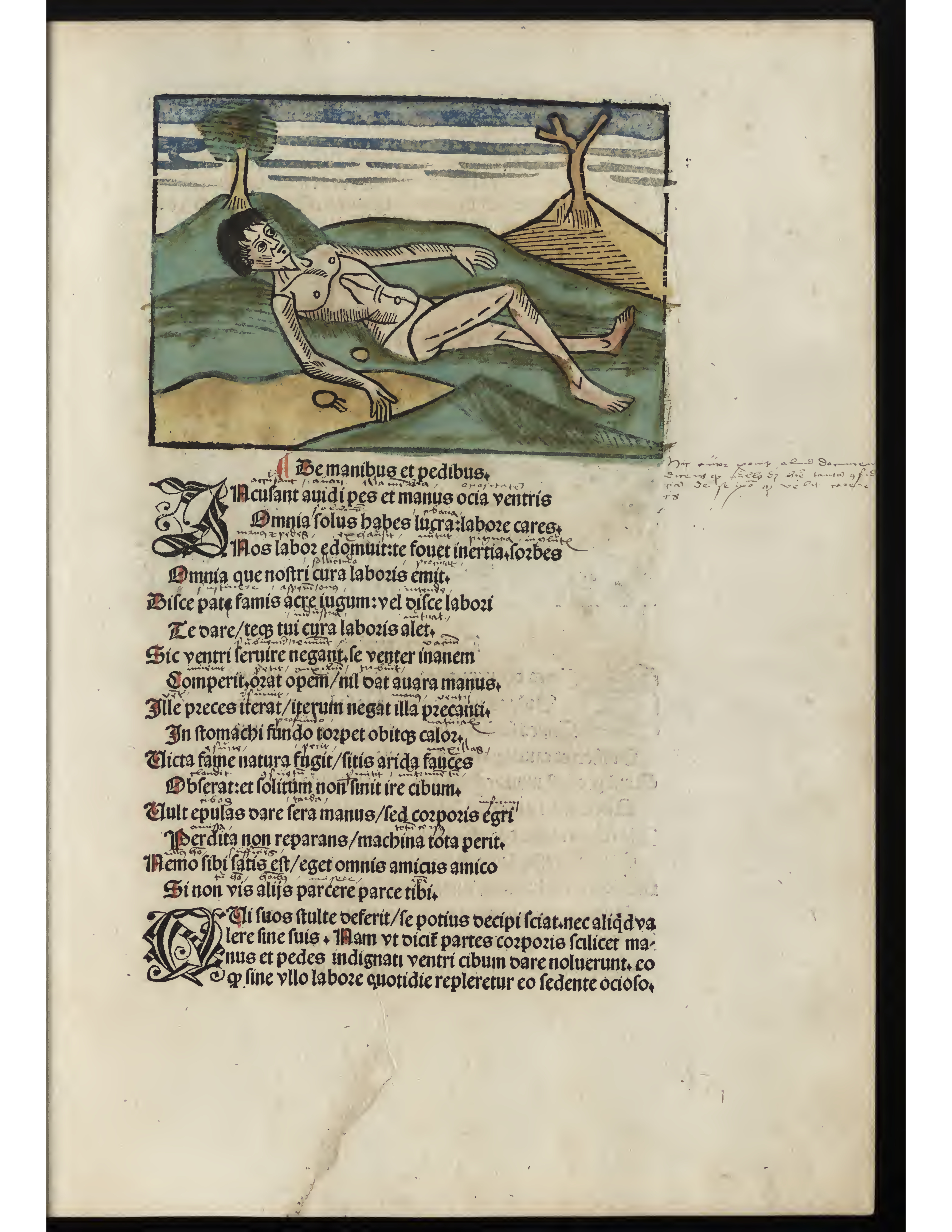 - There is a person lying down on the ground completely naked. In the background there is a tree and hills. Nobody else is around, other than the naked person.