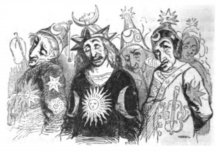 [Three Laputan scholars accompanied by their Flappers]