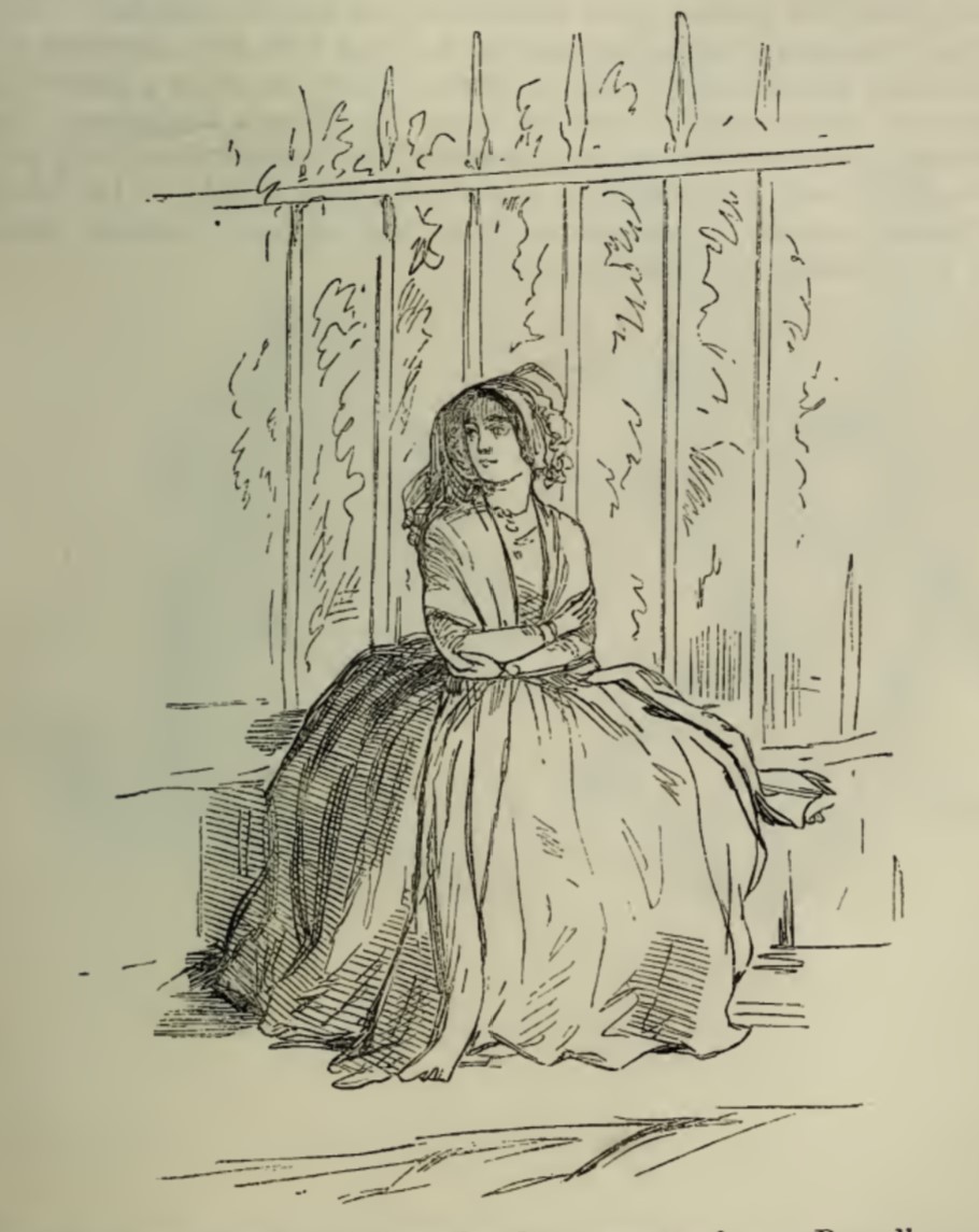- Amelia Osborne sits outside the railing of the garden opposite Mr. John Osborne’s house, watching the lights in the windows on an evening when her son has not visited her.