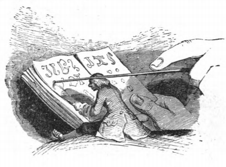 [Glumdalclitch teaches Gulliver to read the language of Brobdingnag]