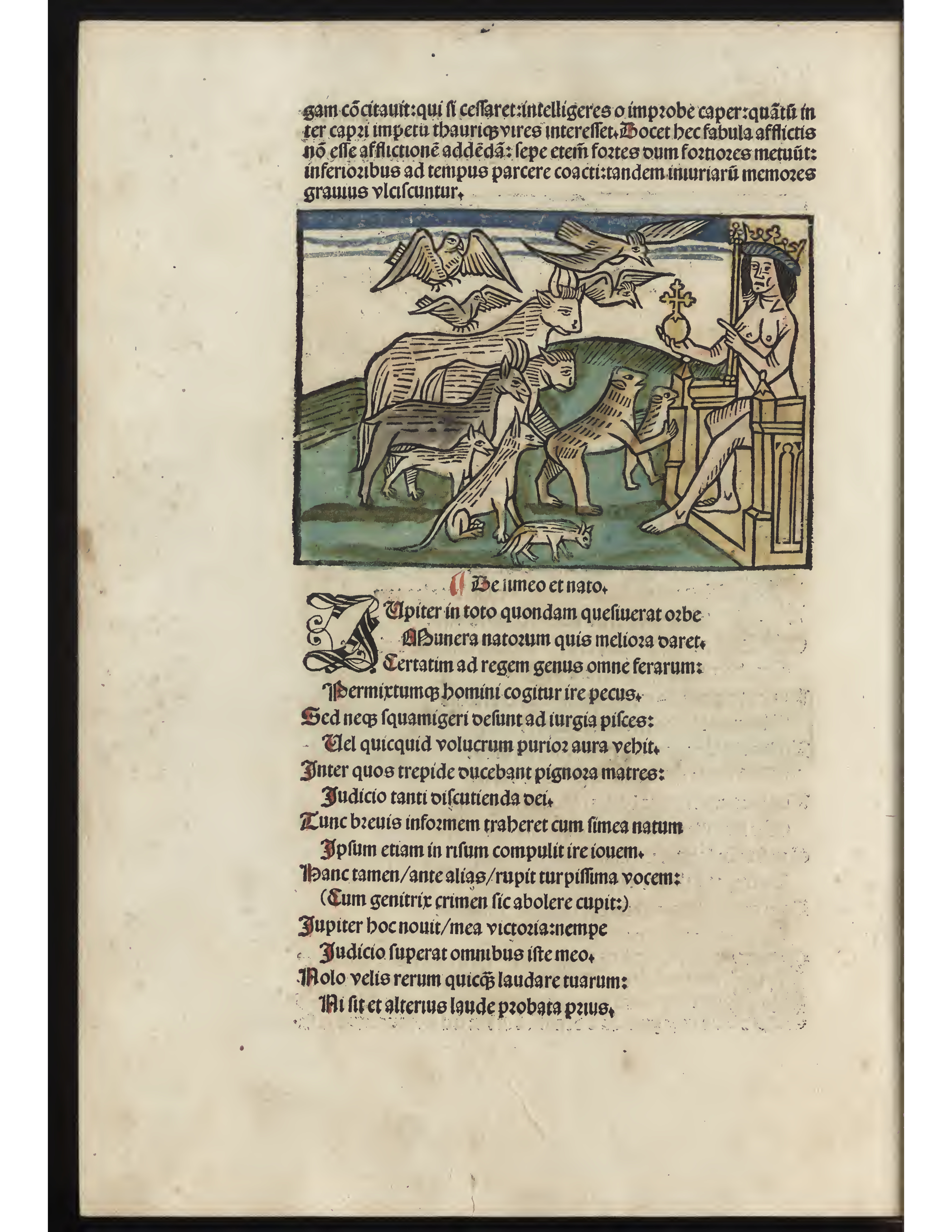 - A naked man who appears to be a king sits on a throne wearing a crown and holding a scepter. The whole animal kingdom appears before the man, who is instructing the animals.