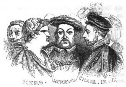 Here we see busts of Nero, Henry VIII, and Charles IX, all of whom were very unpopular rulers. Nero was the Roman Emperor from 54-68 CE. He marked the last of the Julio-Claudian Dynasty. According to Roman historians, Nero was famous for his extravagance and corruption, and many thought he fiddled while Rome burned during the fire in 64 CE. While this is likely a myth, Nero did take civic land that was destroyed during the fire to build a new imperial palace. Henry VIII was the King of England from 1509-1547. Like Nero, he was widely thought to be a tyrant, as he was married six times, divorcing two wives, and beheading two more. Henry VIII split with the Catholic Church in the 1530s as he tried to get his first marriage to Catherine of Aragon annulled, creating the Church of England in the process. Charles IX was the King of France from 1560-1574. During his reign, religious wars broke out between Catholics and Protestants, and allowed the St Bartholomew’s Day Massacre in August 1572, where thousands of French Protestants were killed (between 5 000 to 30 000 according to modern estimates). All three of these rulers were thought to be tyrannical and immoral. The image appears in an appendix to Gulliver’s travels to Lilliput, which follows the conclusion of Gulliver’s trip to Brobdingnag. Gulliver’s description of the Lilliputian education is very negative, saying that what is taught is simply superfluous, and not anything of substance, as his bias makes him think that the European model for education is the correct model. He says that the teachers will blindly follow the emperor of Lilliput even if they are a tyrant, as many believed Nero, Henry VIII, and Charles IX to be. He also tells the reader that the Lilliputian teachers pay no attention to important dates, focusing more greatly on the character of the ruler. This method meant that students learned to judge historical figures, rather than the facts surrounding them. The same image appears in the 1839 Krabbe edition.