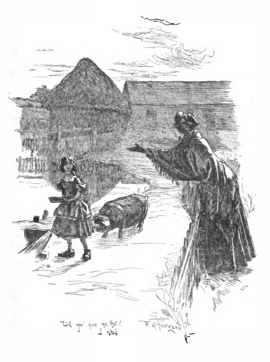 After breaking off her engagement to Mr. Rochester, Jane fled north as far as she could before she ran out of money. She arrived at the Moors of England when she could no longer afford a carriage. She slept outside for two days and two nights, before arriving at Moor House. During this time, she had to beg for food. Here she asks a young girl for her leftover porridge she was going to give to a pig.