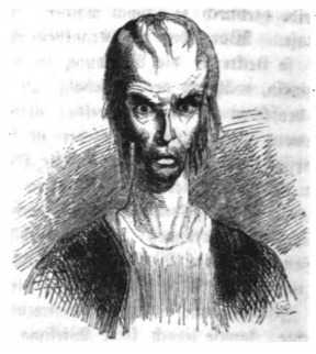 Here we see the scientist nicknamed the ‘universal artist’ from the Grand Academy on Balnibarbi. This man oversaw fifty other scientists all working on several different hypotheses, including condensing air into a tangible substance, softening marble to use it as pillows, petrifying hooves of living horses, and sowing the land with chaff to make it more virtuous. Gulliver encountered him in the wing of speculative learning. This man is likely an allusion to Sir Robert Boyle, a scientist who conducted experiments in several aspects of the natural world and was also a theologian. In this image, the scientist is depicted with a particularly large head, likely to indicate his intelligence. The same image appears in the 1843 Krabbe edition.