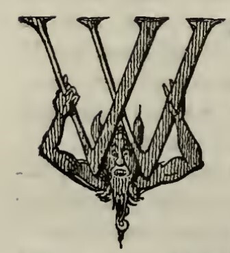 - A devil with long beard and pointed horns, holding up the letter W from When.