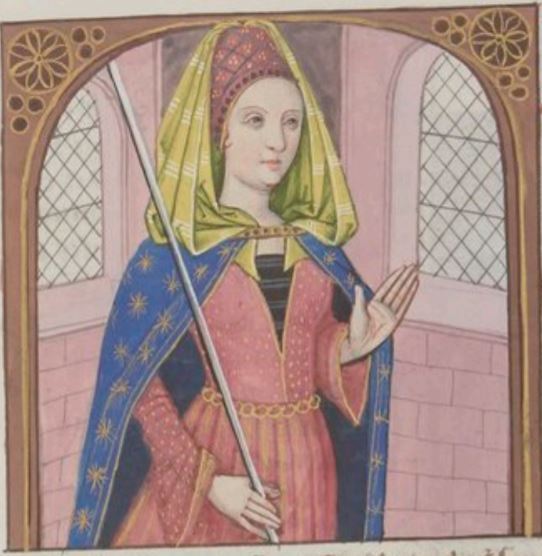 This illumination depicts a portrait of a woman named Hecuba, the queen of Troy and wife of king Priam of Troy. Boccaccio explains that he wrote on Hecuba to highlight her terrible misfortunes. She had watched many of her children die, including the hero Hector, and watched her husband be disemboweled. Along with watching her loved ones violently die, she watched her entire city fall to the ground. Many believe she had become a slave to the Greeks once the city was taken.