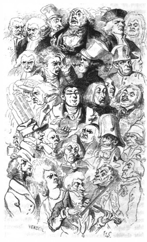 Here we see the busts of the types of men that Gulliver thought to ruin his life in Europe, and whom he was glad to be free of in the Country of the Houyhnhnms. These men include: physicians, lawyers, informants, censurers, backbiters, pick-pockets, highwaymen, housebreakers, attorneys, bawds, buffoons, gamesters, politicians, tedious talkers, controverters, ravishers, murderers, virtuosos, and robbers. The same image appears in the 1843 Krabbe edition.