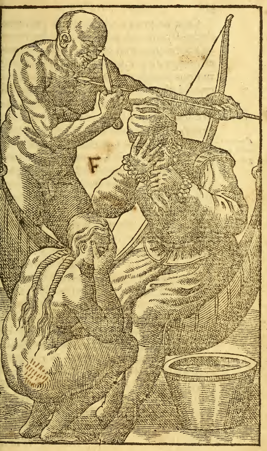 [A European man and a Tupinambá woman weep into their hands while a Tupinambá man stands behind them]