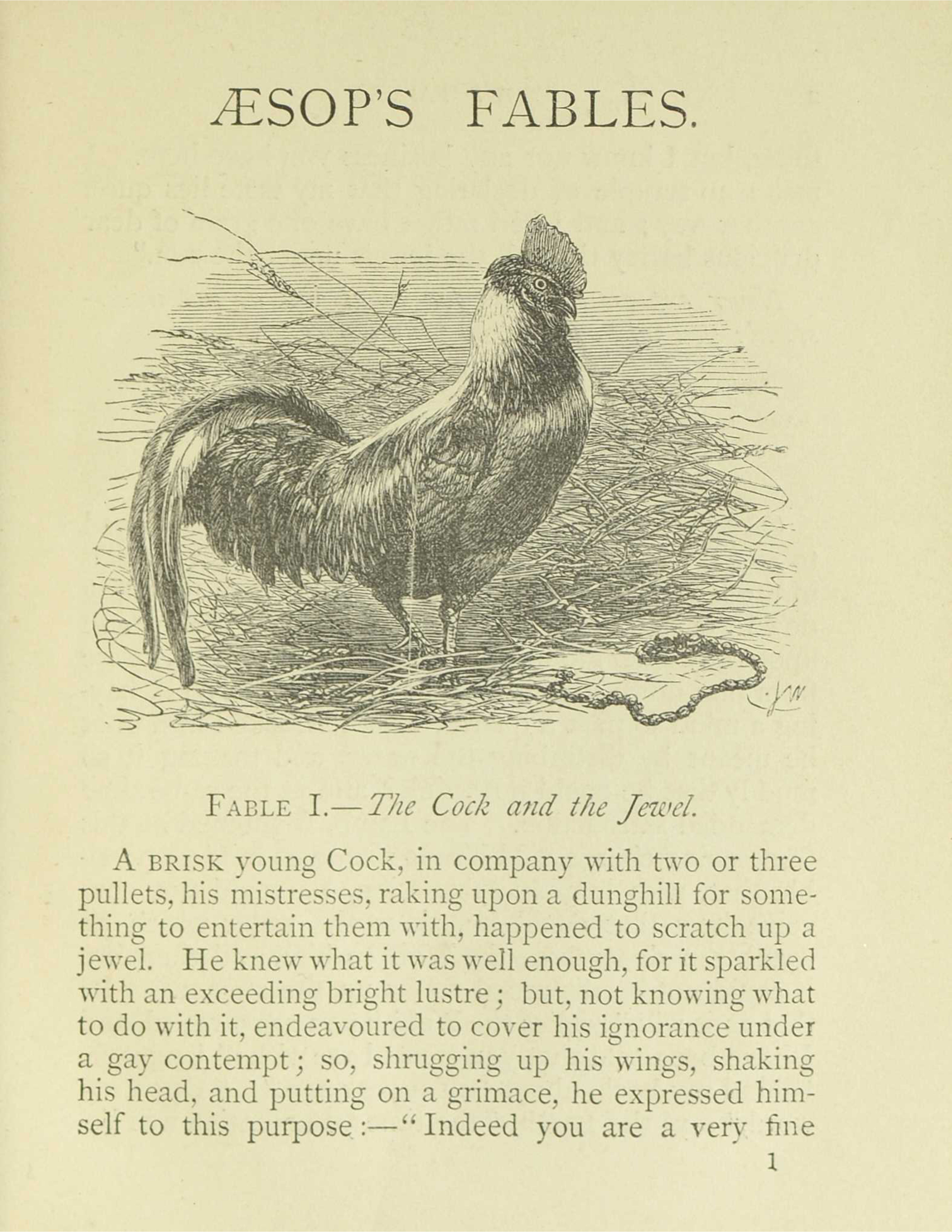 - A brisk young Cock, in company with two or three pullets, his mistress. raking upon a dunghill for something to entertain them with happened to scratch up a jewel.