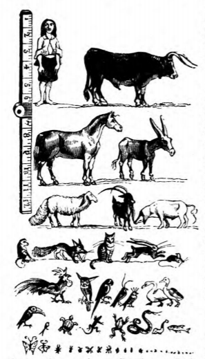 In this image we are shown the scale of all the animals on Lilliput next to Gulliver’s ruler which measures twelve inches. The average Lilliputian man measures six inches tall. The scale includes a human, cow, horse, goat, ram, sheep, dog, monkey, cat, fox, rabbit, mouse, rooster, owl, parrot, parakeet, dove, swan, duck, toucan, turtle, lizard, frog, snake, fish, butterfly, moth, and several other types of insects. The purpose of the image is to demonstrate that the animals on Lilliput are roughly the same scale to the human as is true in the real world. Due to this scale we are also led to believe that the same animals exist on Lilliput as do in reality, simply on a smaller scale, and thus they likely have the same roles and utilities. This contrasts to some animals in the other lands visited by Gulliver later in the story where the animals are more highly fictionalized. The same image appears in both the 1839 and 1843 Krabbe editions.