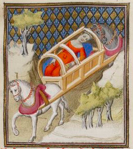 Poppaea died while pregnant when Nero kicked her. Refusing to have her cremated, he ordered that her funeral be very elaborate, like those of kings. She was embalmed and buried publicly. In the image, Poppaea’s body is seen being carted around by horses before she is buried. Her funeral was elaborate, and she is dressed in a nice gown and a crown.