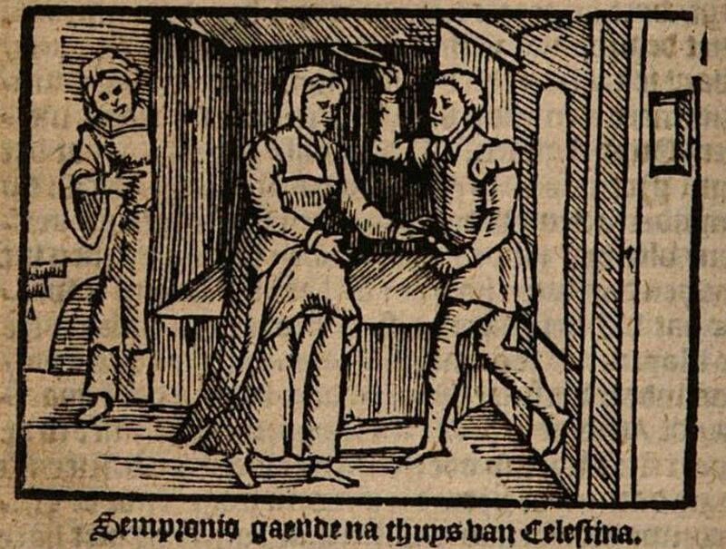 Celestina, Een Tragicomedie van Calisto ende Melibea, inde welcke staen veel profijtelijcke sententien oft spreecwoorden, ende veel nootzakelijcke waerschouwinghen, byzonder voor Jonghe-ghezellen, betoonende het groot bedroch vande Pluym-strijckers, van de ontrouwe Dienaers, ende voor al van de Koppelerssen en̄ lichte Vrouwē.