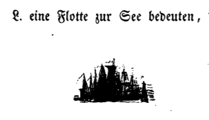 Here we see the letter L with a castle. The letter L using a method of coding developed by scholars at the Grand Academy on Balnibarbi signifies the phrase fleet at sea. This image comes in a description of a conspiracy found by a professor from the Grand Academy on Balnibarbi. This conspiracy is thought to be an allusion to the trial of Francis Atterbury, the bishop of Rochester for allegedly plotting with the Jacobites. Atterbury was charged with treason in 1722 and was exiled to France. The same image appears in the 1839 Krabbe edition.