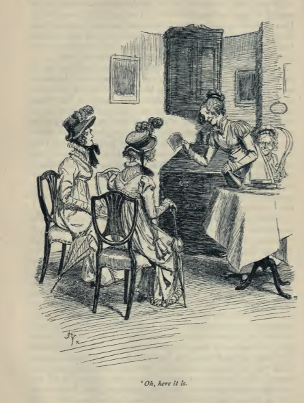 - Here we see Harriet and Emma visiting the Bateses. While out on a walk, Emma and Harriet felt obliged to visit them. Miss Bates brought out a letter from her niece Jane Fairfax writing to say that she would be arriving in Highbury the following Tuesday. Emma was not excited to hear this as she found Jane Fairfax irksome. This scene occurs in chapter 19. The characters are shown in the traditional regency style. The women wear regency style dresses with empire waistlines. Emma and Harriet wear bonnets. Bonnets were a popular fashion for women who wanted to protect their faces from the sun while out on walks. The regency period dated to the early nineteenth century (1811-1820) when George, Prince of Wales, later George IV (r. 1820-1830), reigned as regent for his mentally ill father, King George III (r. 1760-1820). The regency period is associated with the rise of neoclassicism in art and fashion.