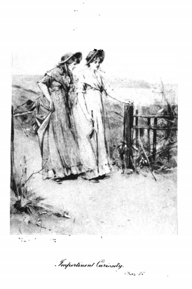 Here we see Elinor walking from Barton Park to her cottage with Lucy Steele. Lucy Steele was a cousin of Mrs. Jennings, Lady Middleton’s mother. Lucy took a liking to Elinor, although Elinor was not very fond of her. On this walk, Lucy confided in Elinor that she was engaged to Mr. Edward Ferrars, and had been for a year. Elinor was taken aback by this news, because she believed that Edward Ferrars, the eldest son of a wealthy family, was going to propose to her. He was the brother of Elinor’s half-brother's wife, and during her time at Norland, he visited her frequently and showed her much attention. He even came to visit the Dashwoods at Barton Park for a week. Lucy told Elinor that he left her home to come visit Elinor. This scene occurs in chapter 22 as noted underneath the title of this image. The characters are shown in the traditional regency style, with Elinor and Lucy wearing the regency style dress with an empire waist. Their hair is worn tied up, as was tradition for women after their coming out before the queen, signaling her entrance into society. They both wear bonnets to protect their faces from the sun. These bonnets were popular during this period because going on walks was a common pastime, and the fashion was for young women to be quite pale, indicating that they did not have to do manual labour outside. The regency period dated to the early nineteenth century (1811-1820) when George, Prince of Wales, later George IV (r. 1820-1830), reigned as regent for his mentally ill father, King George III (r. 1760-1820). The regency period is associated with the rise of neoclassicism in art and fashion. The same image appears as an insert between pages 125 and 126 for the Dent 1893, 1894, 1895, 1896, and 1897 editions of Sense and Sensibility.