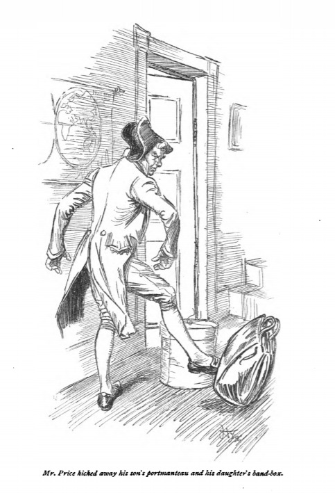 Mr. Price kicked away his son's portmanteau and his daughter's band-box
