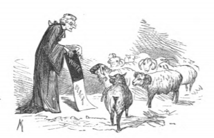- In this image we see a satire of the English legal system. We see a lawyer holding a sign saying ‘black’ and ‘white’, a representation of how lawyers viewed the law. The lawyer is speaking to sheep, representing the people confused by lawyers.