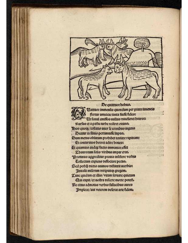 - There are four oxen, and a lion in the image. Three of the oxen are on the top of the image, and one of the oxen is on the bottom of the image facing a lion. The lion and the oxen are having a face-off.