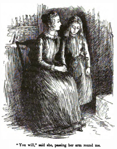 After being embarrassed by Mr. Brocklehurst in front of the class, Jane went away into the corner crying. Helen Burns found her first, and comforted her, then the two girls were found by Miss Temple, a teacher at the school. Miss Temple was a kind young woman and brought the girls into her office and gave them tea, reassuring them. She told Jane that she would write to the doctor that recommended Jane go to school and find out the truth and absolve her of the claims made against her by Mr. Brocklehurst.