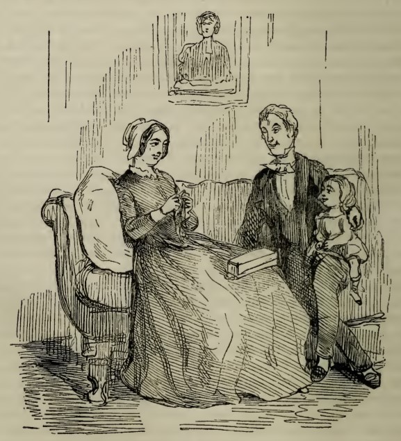 - The Reverend Mr. Binny sits on a sofa with Georgy Osborne on his lap. Opposite him sits Amelia Osborne, to whom he has just proposed marriage and been turned down. She is knitting or crocheting, and above the sofa is a framed portrait of the elder George Osborne.