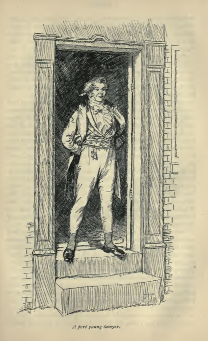 Here we see William Coxe. After Mr. Elton proposed to Emma, she laments her mistake in leading Harriet to believe he loved her. She thinks of all of the other people she to whom she could have introduced Harriet. She thinks of the lawyer William Coxe but she immediately rejects him as a potential suitor, claiming him to be too pert. This scene occurs in chapter 16. The characters are shown in the traditional regency style. William Coxe wears a waistcoat and tailcoat with a cravat. The regency period dated to the early nineteenth century (1811-1820) when George, Prince of Wales, later George IV (r. 1820-1830), reigned as regent for his mentally ill father, King George III (r. 1760-1820). The regency period is associated with the rise of neoclassicism in art and fashion.