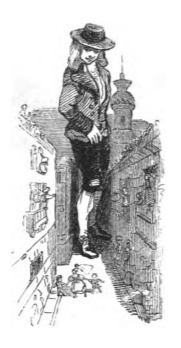 [Gulliver walks through the streets of Mildendo]