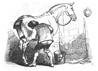 - Here we see a human grooming a horse in a stable. The Houyhnhnms asks about the horses in Europe and how they live. Gulliver explains that humans or yahoos govern the country and care for the horses or Houyhnhnms, including brushing the horse. The same image appears in the 1839 Krabbe edition.