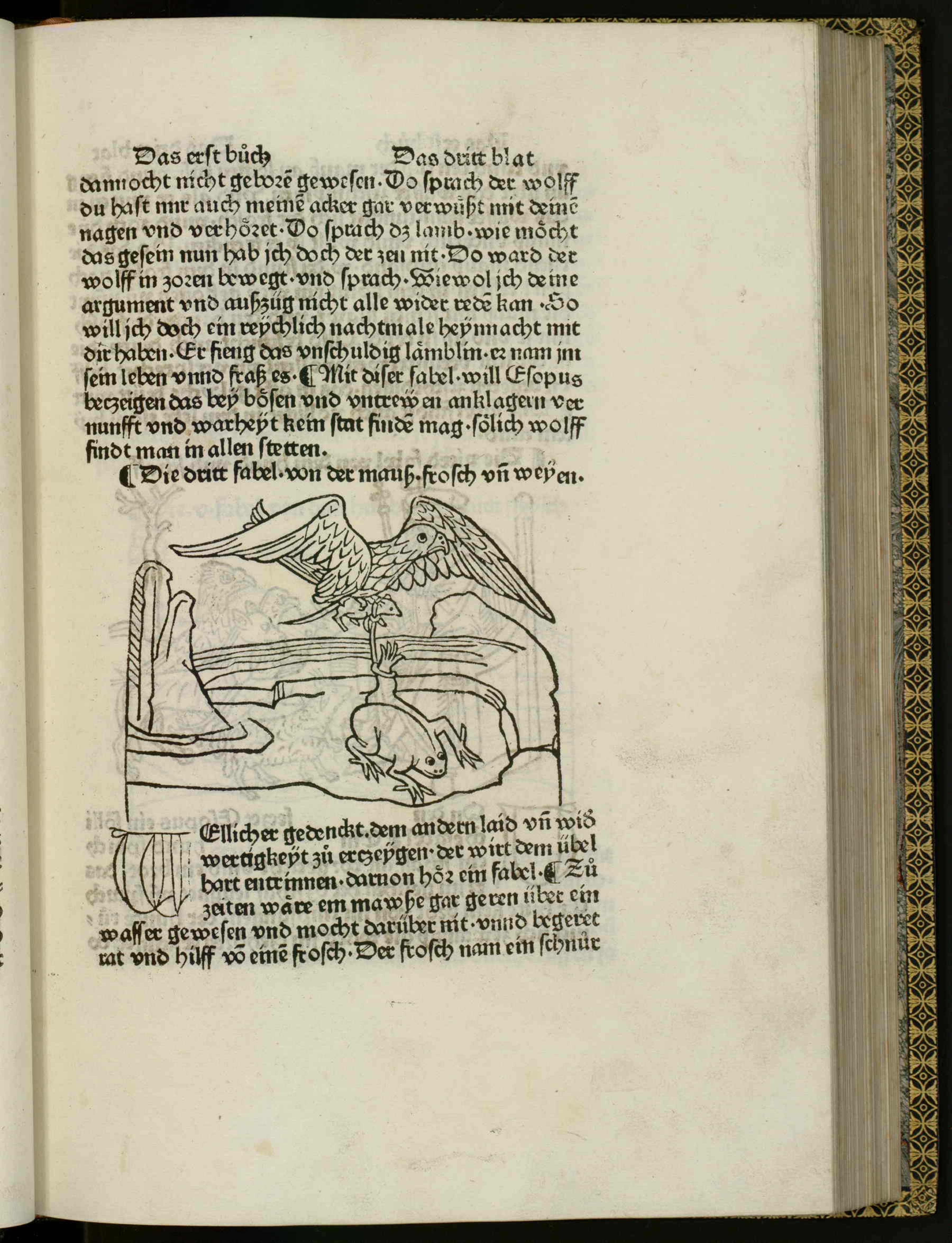 - A bird is flying over a body of water. In his talons is a mouse that is tethered to a frog. The tether goes around the mouse's neck and around the frogs rear left leg.