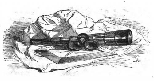 - In this image we see Gulliver’s telescope and glasses lying on a tablet. All of which are lying on a sheet. The image comes at the end of the second chapter. The same image appears in the 1843 Krabbe edition.