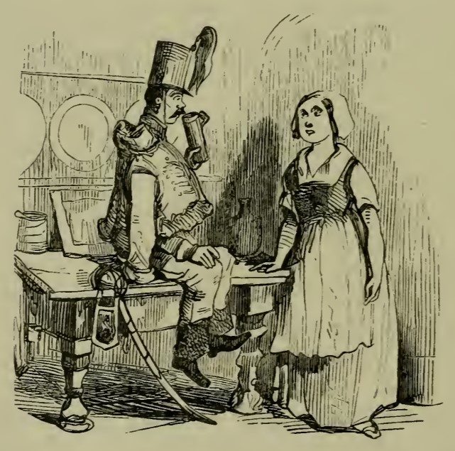 Pauline, the maid, stands in the kitchen looking at her lover, Regulus Van Cutsum. He is sitting on the table, drinking a flagon of beer, and still dressed in the military uniform from the battle which he was ordered by his colonel to flee, though he tells the tale as though he were the only survivor.