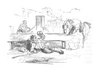 Every five years Houyhnhnms meet from all over the country in a general council. This meeting included games, similar to the Olympics. In this image we see athletes and spectators meeting at a water trough. Gulliver sits in front of the trough drinking with the other Houyhnhnms.