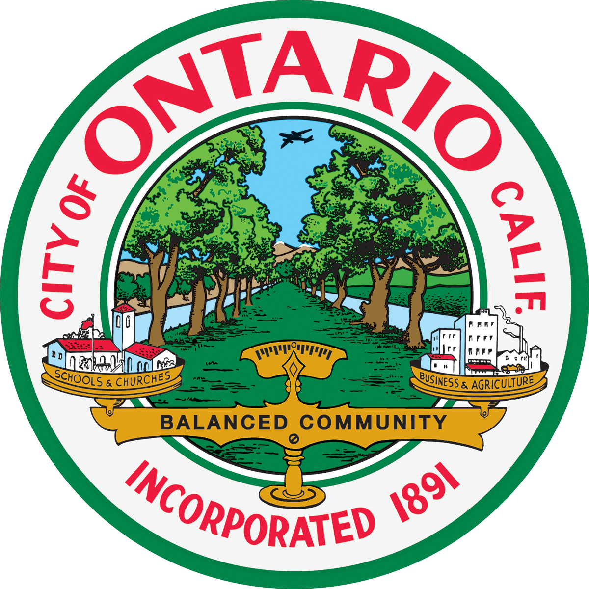 - CITY OF ONTARIO CALIF. INCORPORATED 1891 SCHOOLS & CHURCHES BUSINESS & AGRICULTURE BALANCED COMMUNITY