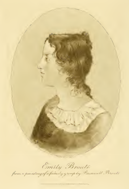 Here we see a portrait bust of Emily Bronte. According to the list of illustrations, this is the only portrait of Emily Bronte that exists. The portrait comes from a larger image of the entire Bronte family, taken by Branwell Bronte, Emily’s brother. The list of illustrations says, The Rev. A. B. Nicholls, her brother-in-law, considers it a good likeness.