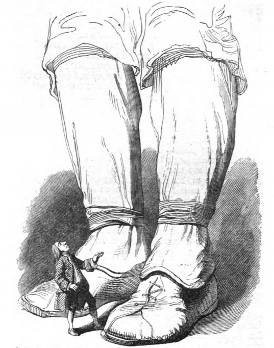 [Gulliver standing next to a giant’s feet]