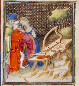 Sempronie courtisée ; sur la table une harpe, une cithare et une viole