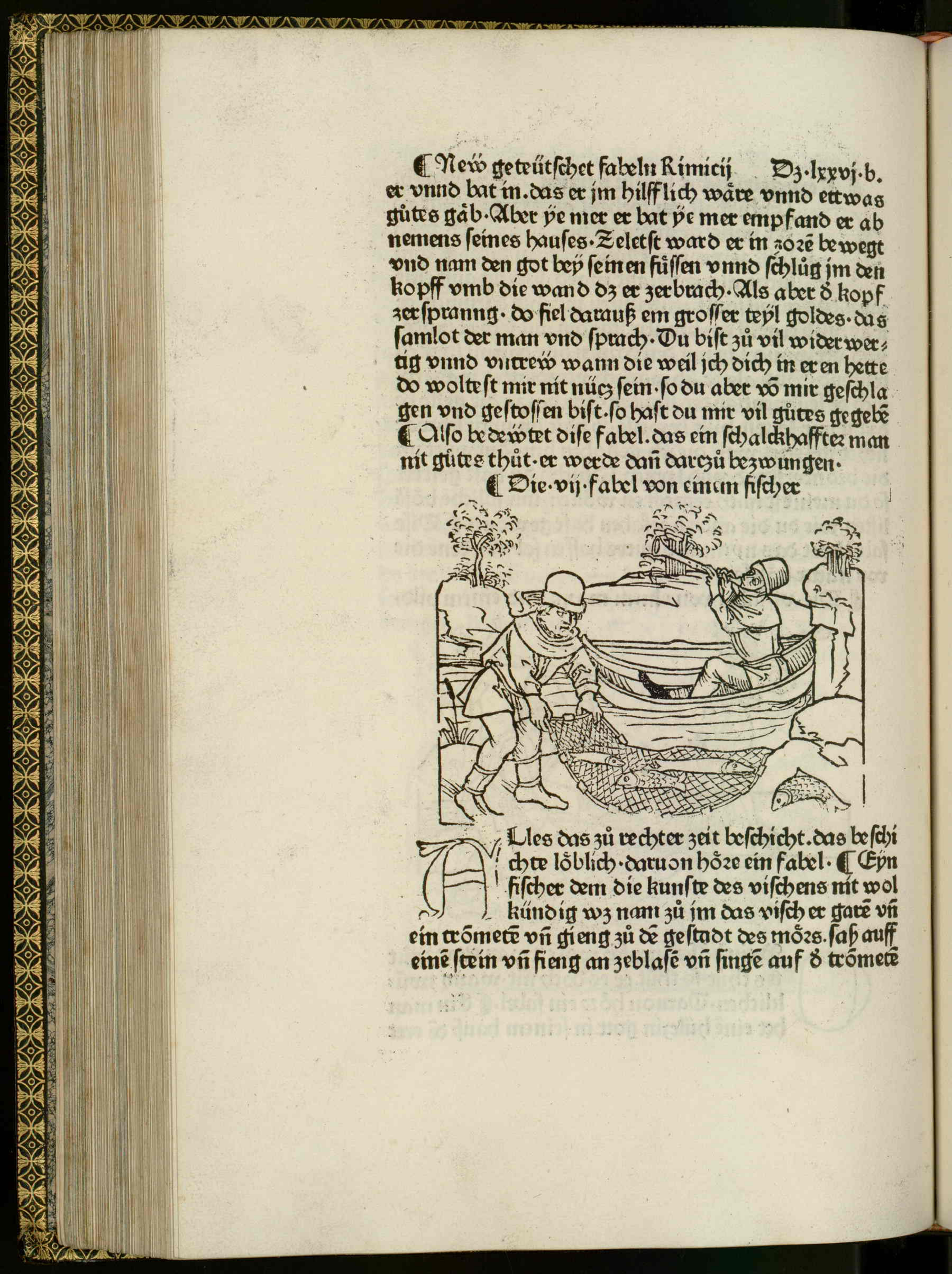 - There are two men in this image. one man is in a boat in the water blowing into an instrument. The other man is beside him on land, holding a net full of fish. One fish is on the ground out of the net.