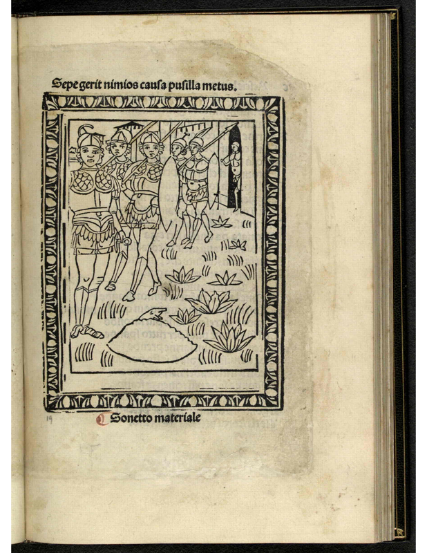 - An army of soldiers wearing armor and holding spears and shields are walking out of a castle. Weeds and plants come out of the ground they are walking on. The first soldier walks by himself, while the others behind him walk in groups of two.