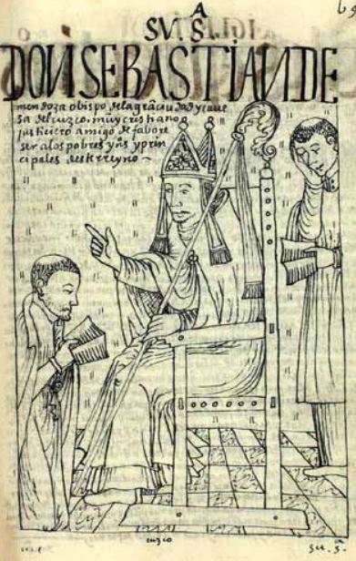 Sv S[enori]a Don Sebastian de Mendoza Obispo de la Gran Ciudad y Cauesa del Cuzco, Muy Cristiano, Justiciero, Amigo de Faboreser a los Pobres Yndios y Principales Deste Rreyno