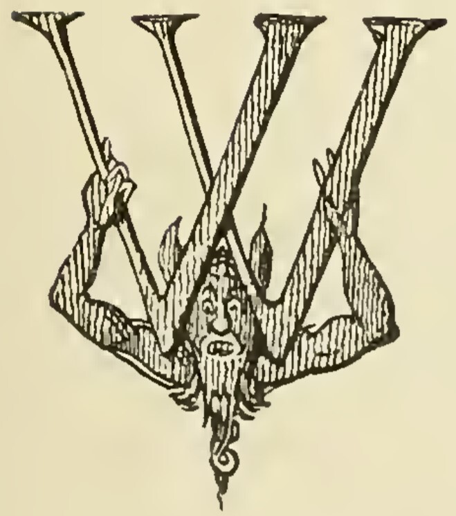 - A devil with long beard and pointed horns, holding up the letter W from “When”.