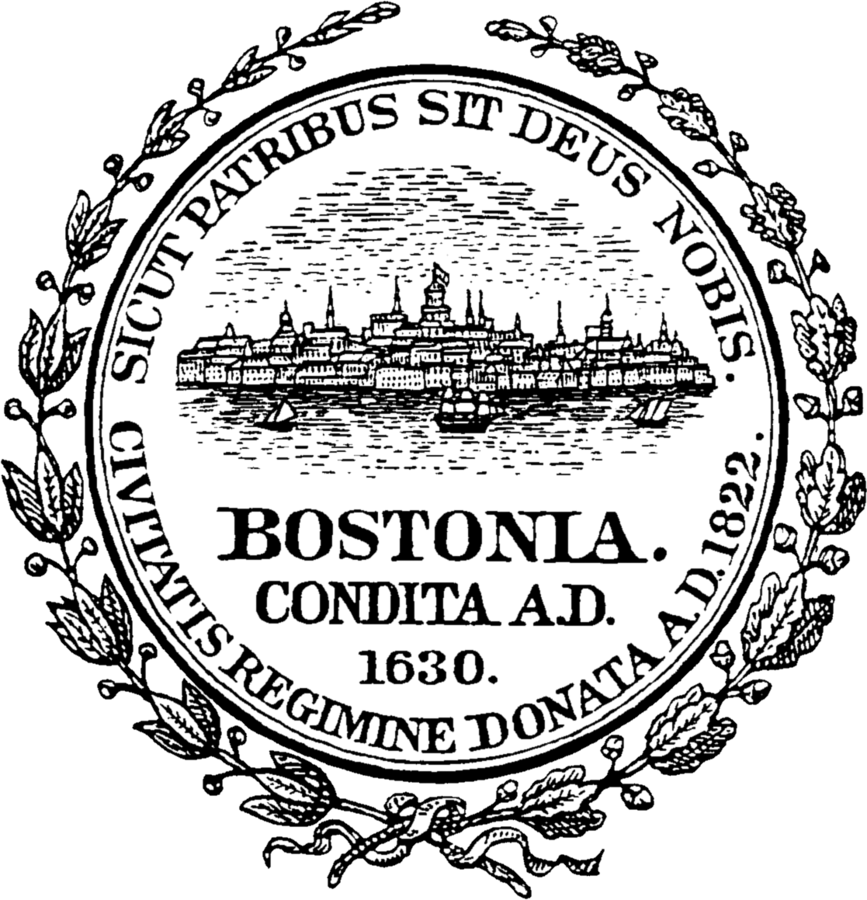 - "SICUT PATRIBUS SIT DEUS NOBIS." "CIVITATIS REGIMINE DONATA A.D. 1822." "BOSTONIA. CONDITA A.D. 1630."