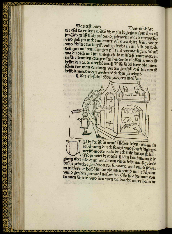 - "A man is on the left side of the image and is unlocked the door to a castle while also holding a watering can or a similar looking object. The man is also wearing a hat. Inside the castle on the right side of the page are two rats."