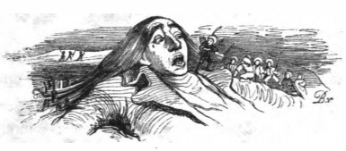 Here we see Gulliver’s first encounter with the Lilliputians. We see the surprise on Gulliver’s face when he wakes up to the Lilliputians – who are one-twelfth his size – walking over him. Gulliver appears to be tied up by his hair. Several of the Lilliputians are armed, either with spears or bows and arrows. The same image appears in the 1843 Krabbe edition.