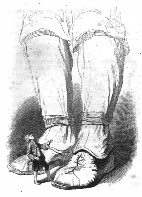 [Gulliver standing next to a giant’s feet]