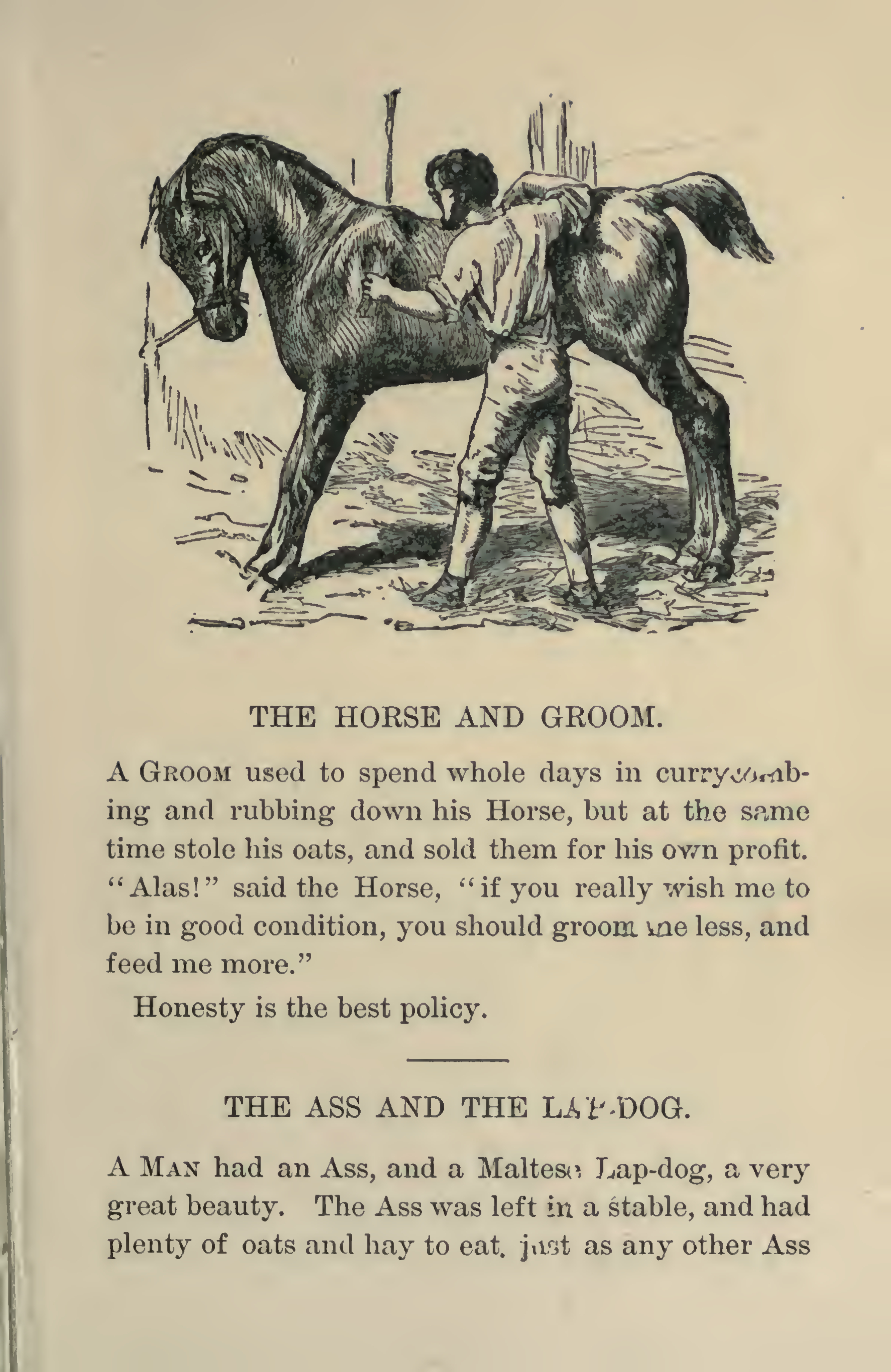 A man is grooming a horse, with his right arm perched over the horse’s back, and burshing it with using his left hand. The horse’s head is slightly bent to look at the groom, looking impatient. The horse’s stance seems as though it is irritated and does not wish to be groomed.