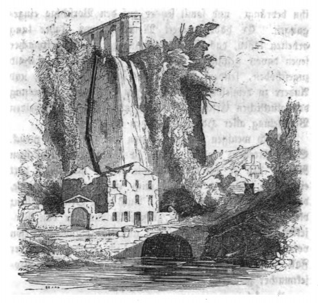 A Lord of Balnibarbi shows Gulliver around the estate. On his tour he took Gulliver to this old mill. The Academy wanted to move the mill upstream, and although the Lord was not enthralled with the idea, he reluctantly agreed, pressured by his friends. The new mill failed, and the Lord was blamed. The same image appears in the 1843 Krabbe edition.