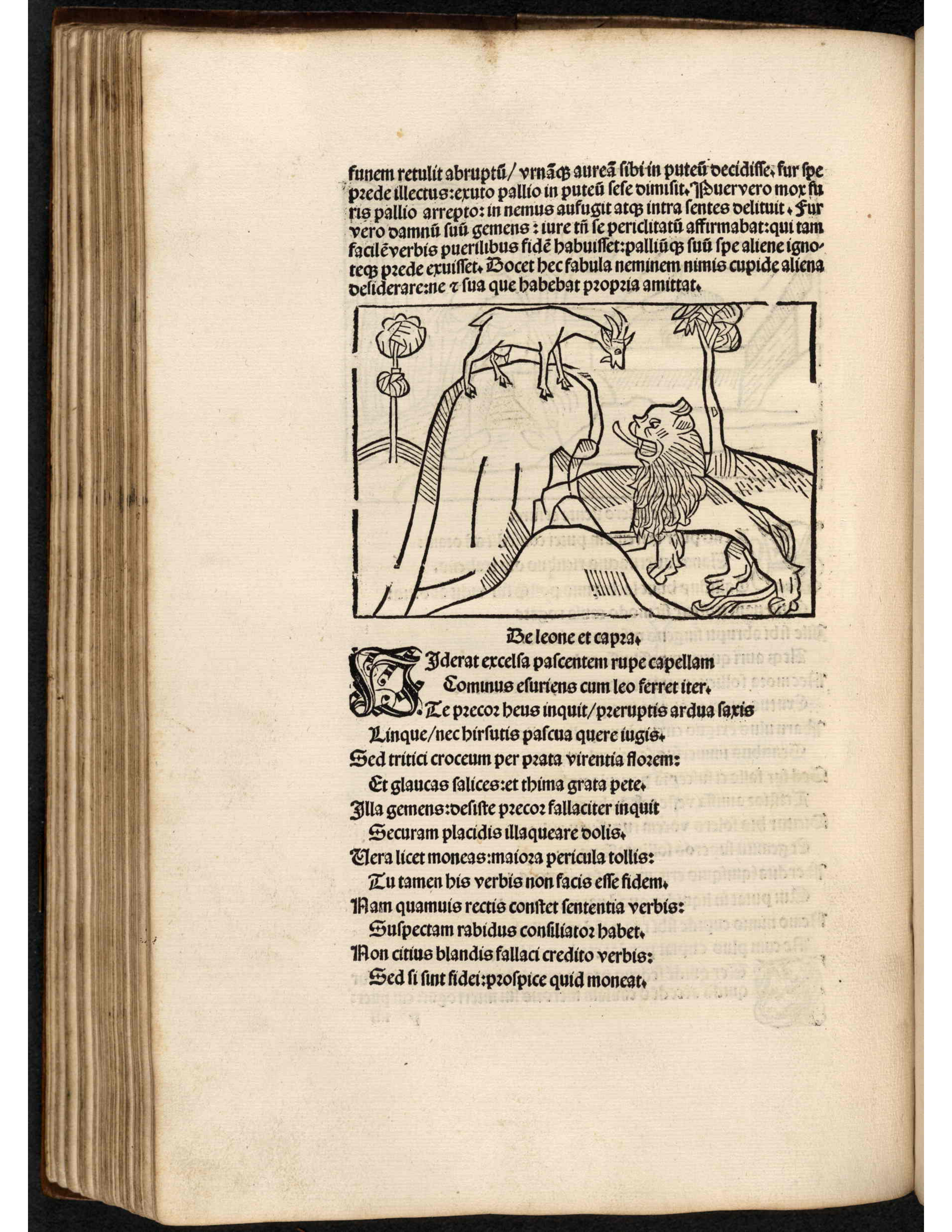 - There is a goat standing on a cliff looking down at a lion that is on the bottom of the cliff. The lion is roaring at the goat.