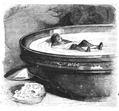 [Gulliver floating in a bowl of milk]