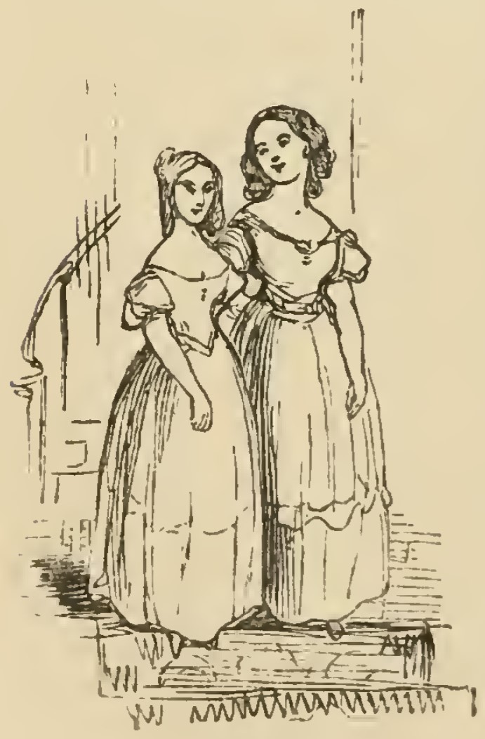 - Rebecca Sharp and Amelia Sedley with their arms around each other's waists as they walk down the stairs to dinner at the Sedley house.